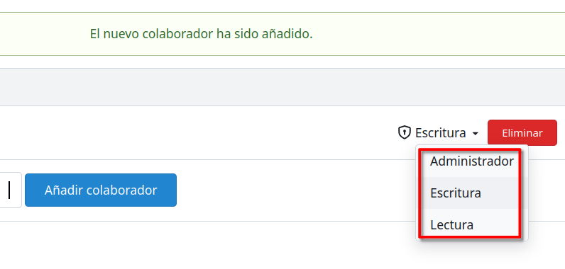En Codeberg le podemos poner permiso en el momento de añadirlo