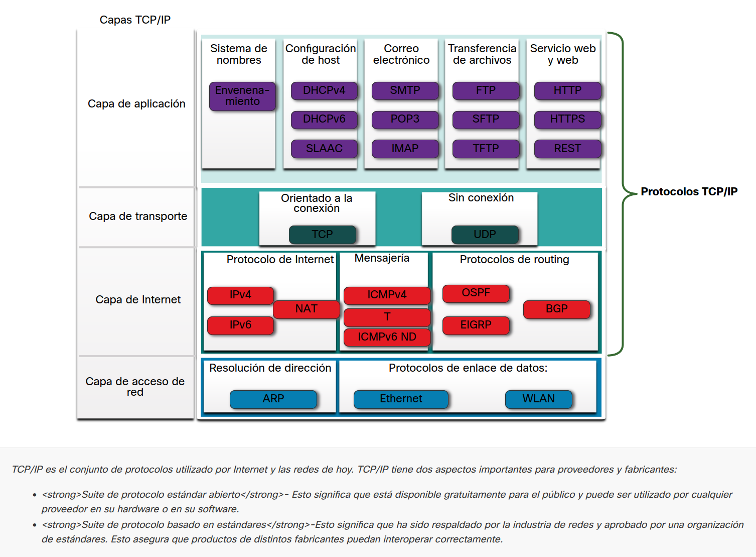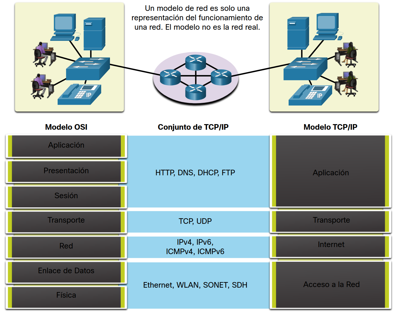 | 1 - Acceso a la red | Controla los dispositivos del hardware y los medios que forman la red. |