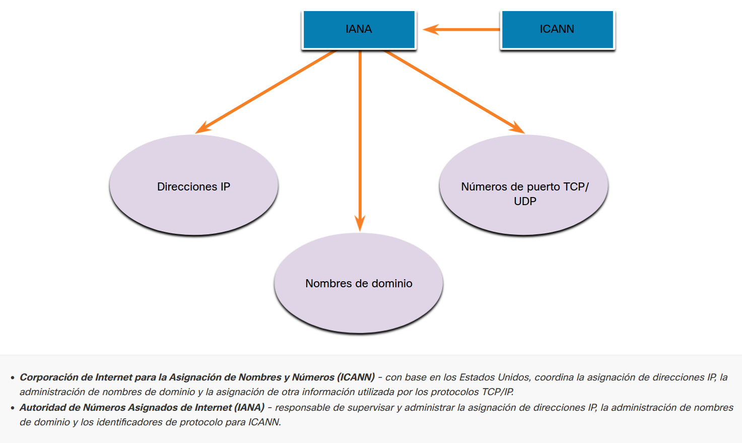 La siguiente figura muestra las organizaciones de estándares involucradas en el desarrollo y soporte de TCP/IP e incluyen IANA e ICANN.
