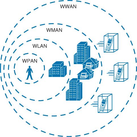 Las redes inalámbricas se clasifican según su alcance geográfico en cuatro grandes categorías: WPAN, WLAN, WMAN y WWAN.